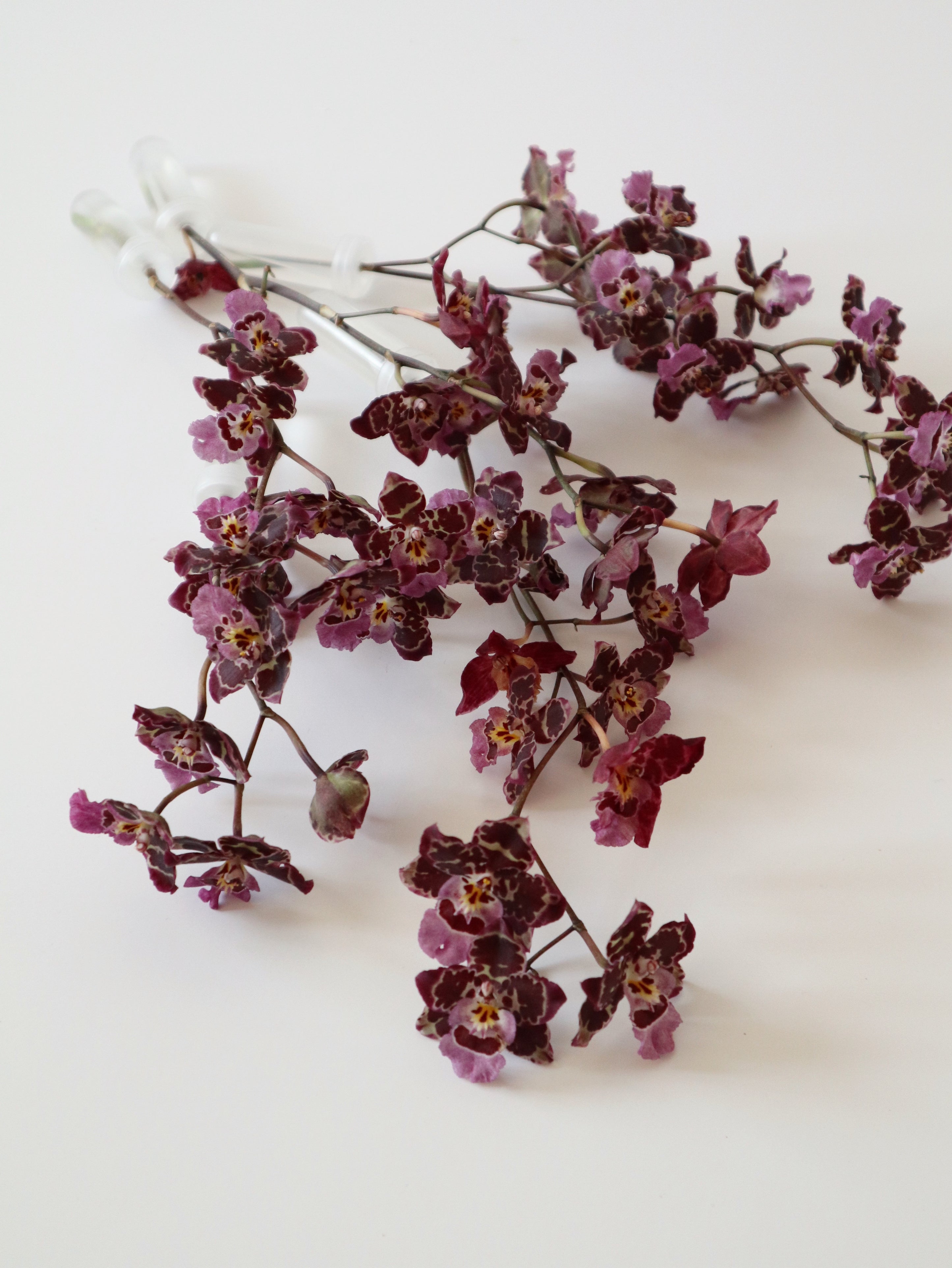 'Gina' sets herself apart with deep purple blossoms that rest on slender, graceful stems, challenging the traditional Oncidium orchid silhouette. Her blooms are both elegant and lively, making her the perfect addition to small, intimate spaces or as a focal point in more private settings.